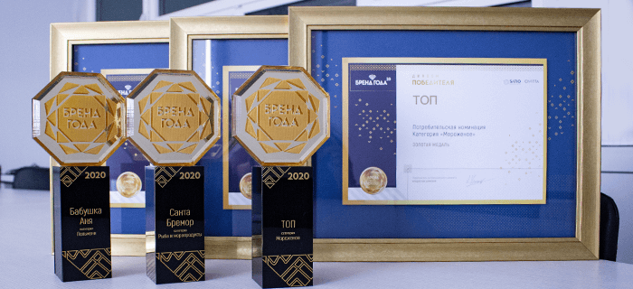 The gold medals were handed: in the category "Fish and seafood" to the brand "Santa Bremor", in the category "Ice cream" to the brand "TOP", in the category "Dumplings" to the brand "Babushka Anya".