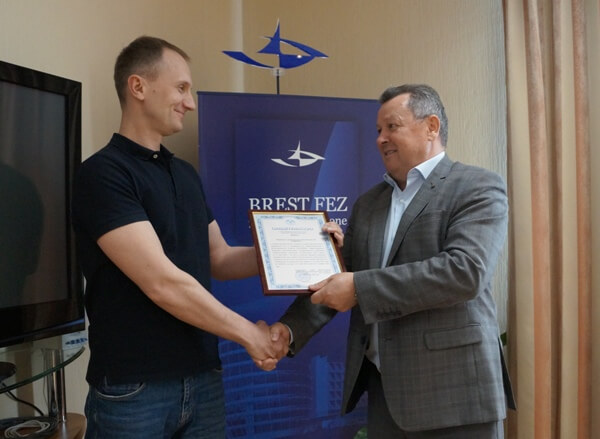 The certificate of a “Brest” FEZ resident was handed to Denis Kisel, the Director of “LEDY-X” LLC. Alexander Shukailo, a deputy head of the FEZ administration congratulated the entrepreneur on starting work in the free economic zone and he wished his company new creative ideas, innovative solutions and high achievements.