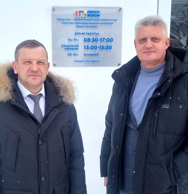 В рамках рабочей поездки в г. Пинск глава администрации СЭЗ «Брест» Вадим Кравчук совместно со своим заместителем Сергеем Маликом посетили производственные площадки ОАО «Полесье» и ООО «ПИНСК-ИСКОЖ». Цель – мониторинг текущей ситуации на предприятиях-резидентах с целью выработки решений актуальных вопросов на местах.