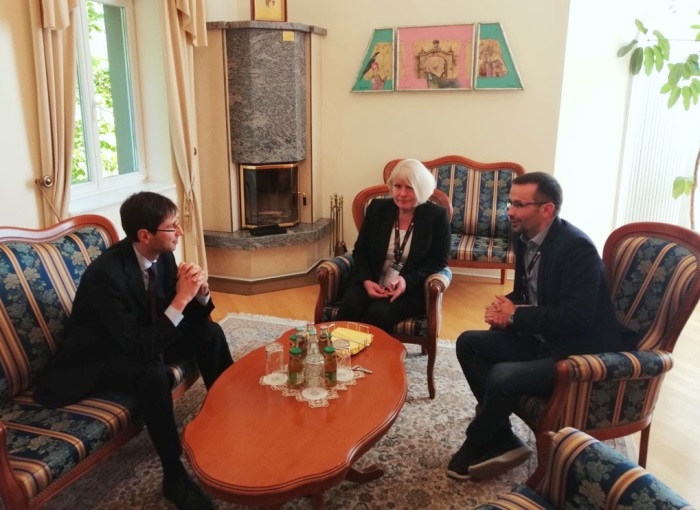 Также в рамках поездки состоялась встреча представителей СЭЗ «Брест» с Чрезвычайным и Полномочным Послом Республики Беларусь в Федеративной Республике Германия Денисом Сидоренко, который поблагодарил за инициативу и поддержал идею СЭЗ «Брест» об использовании площадок крупных международных выставок Германии для установления прямых контактов с представителями деловых кругов не только Европы, но и многих стран «дальней дуги».