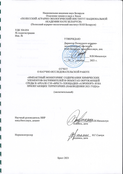 В соответствии с договором, заключенным между ГУ «Администрация СЭЗ «Брест» и Государственным научным учреждением «Полесский аграрно-экологический институт НАН Беларуси» и техническим заданием к нему проводился дополнительный мониторинг на предмет содержания специфических химических элементов в объектах окружающей среды в ареале СЭЗ «Брест» площадки «Аэропорт» и на прилегающих территориях.